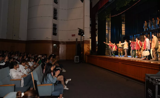 “尽管生活清苦,但剧团同志热情很高,工作劲头十足。民众剧团坚持从老百姓中来、到老百姓中去,以满腔热情为群众服务。在烽火硝烟的战争年月,大家自背行李、道具、戏装,不畏酷暑严寒,走遍边区山山水水,把戏送到沟沟洼洼,传播党的声音,宣传抗日主张,被誉为人民大众的‘艺术野战兵团’。当时,民众剧团下乡演出演的《小放牛》很受老百姓喜欢。每次离开一个地方,当地百姓都要把剧团同志送到村子外面,还送给他们许多慰劳品,鸡蛋、花生、红枣,装满了衣袋、挎包!”讲到动情处,张晓斌惟妙惟肖地用湖南话和陕北话分别模仿毛泽东和陕北老乡的语气。