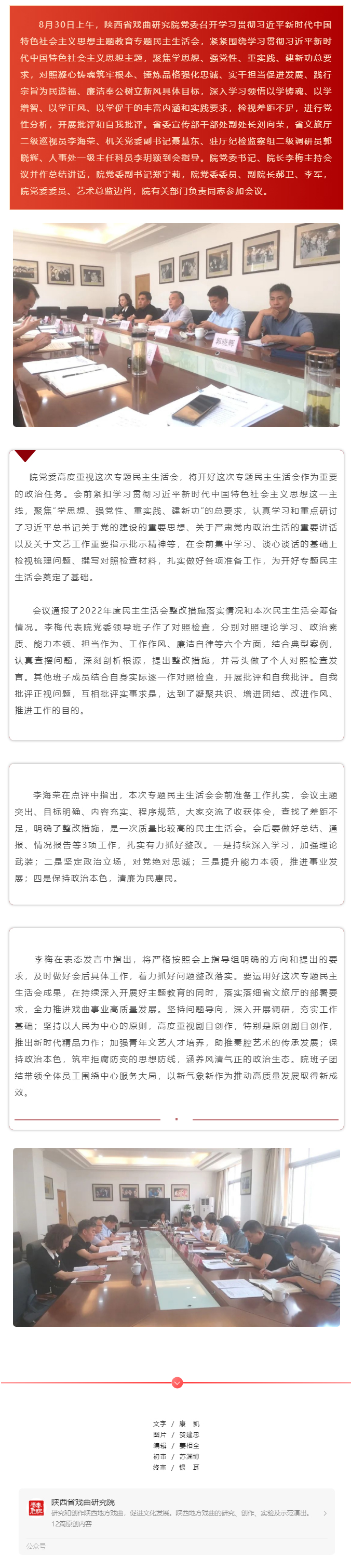 陕西省戏曲研究院党委召开主题教育专题民主生活会