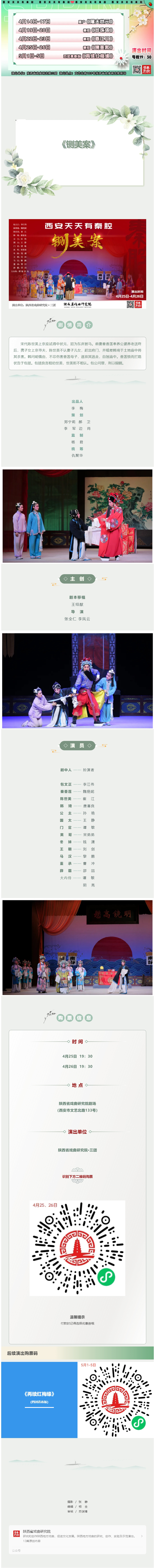 【西安天天有秦腔】4月22日-23日秦腔《春江月》即将上演
